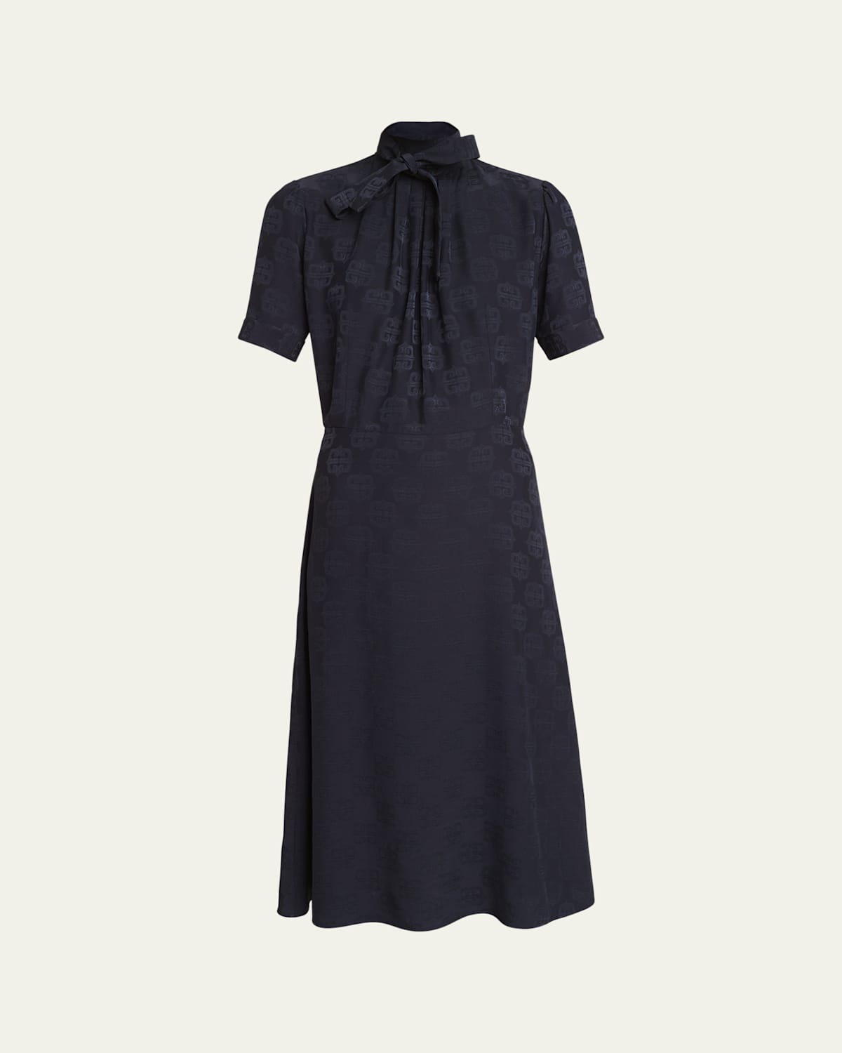 4G Baroque Jacquard Midi Dress with Tie Neck