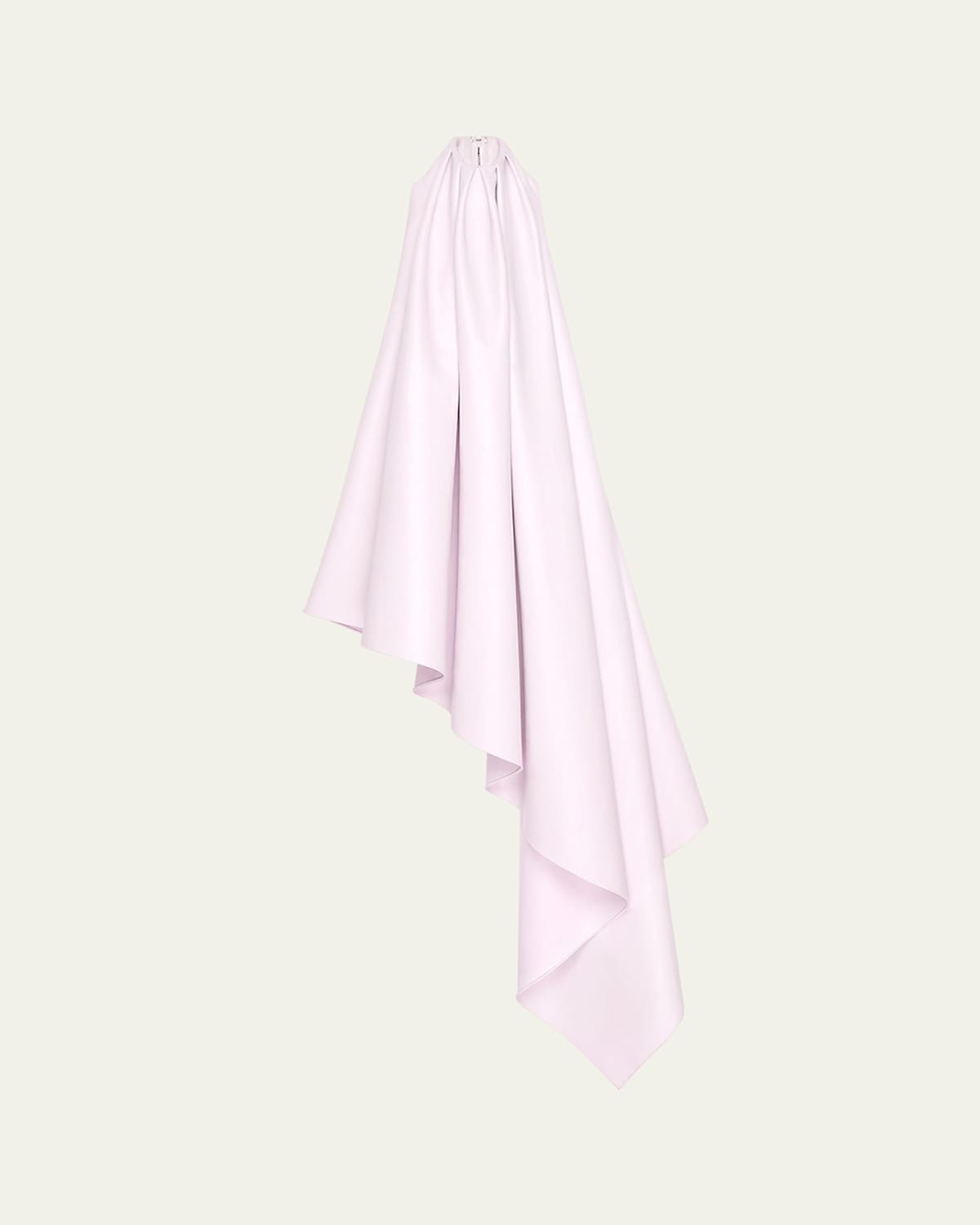 Crafted from supple calf leather, this Givenchy dress features a dramatic asymmetric drape for sculptural elegance. Halter neckline Sleeveless Shift silhouette Hem falls below the knee Back zip Leather Made in Italy