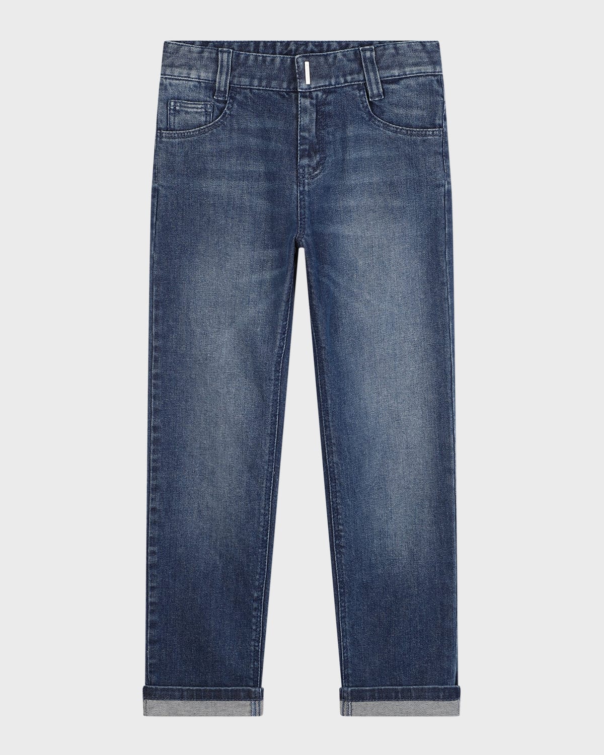 Givenchy denim trousers with classic 4G graphic at the back Clasp/zip closure Fivepocket style Cropped at the ankle Folded hems Relaxed fit Cotton/elastane Imported