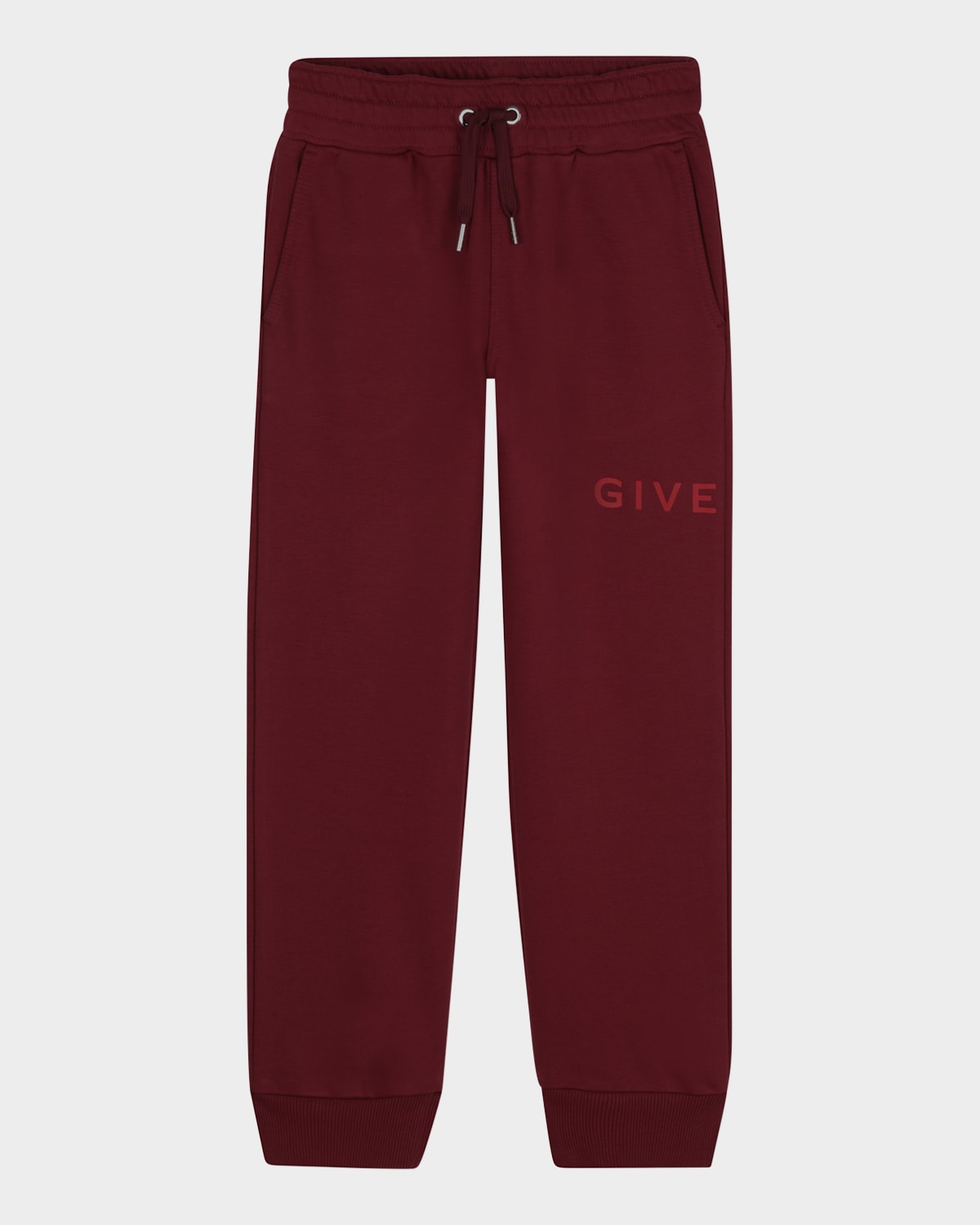 Givenchy unbrushed fleece jogger sweatpants with tonal logo print Drawstring waistband Side pockets; single back pocket Relaxed fit Full length Pullon style Organic cotton/polyester Machine wash cold Imported