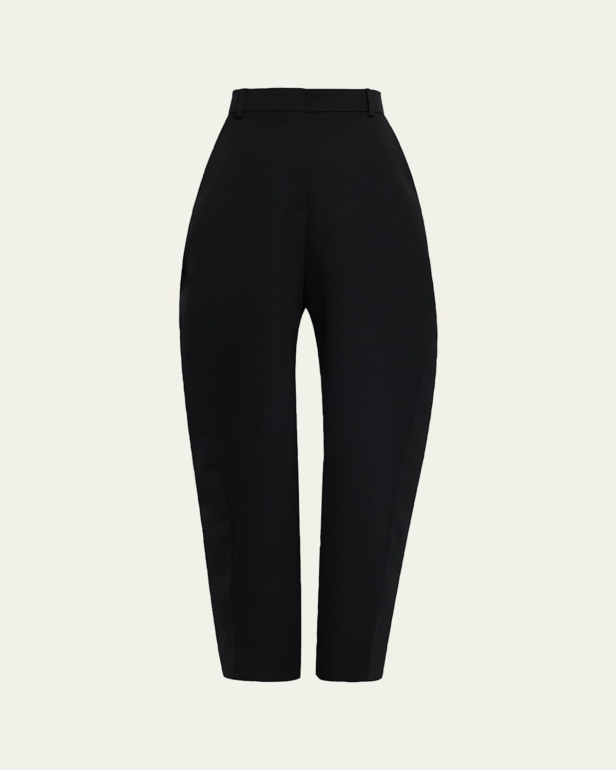 Givenchy solid wool cocoon pants Ultrahigh rise Fourpocket style Tailored, curved legs Full length Hook/zip fly; belt loops Wool Made in Italy