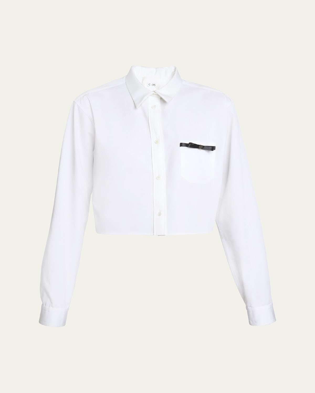 Givenchy cropped buttonfront shirt features a bow detailing at the front Point collar Long sleeves Front patch pocket Back yoke; pleated Cropped at the hip Relaxed fit Cotton Made in Italy