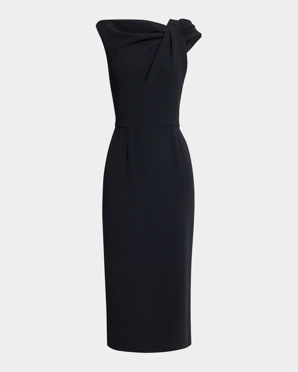 Refined and modern, this Givenchy dress features a softly draped neckline gathered at one shoulder for an elegant focal point. High neckline Sleeveless Sheath silhouette Hem falls below the knee Walking vent back Side zip Viscose/acetate/elastane Made in Italy