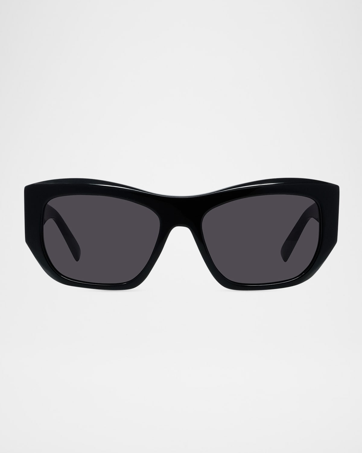 Givenchy rectangular sunglasses crafted of bioacetate From the GV Day line Eye/bridge/temple (in mm): 5417135 Monochromatic lenses Saddle nose bridge Wide, tapered arms Logo signature engraved on the temples 100% UVA/UVB protection Acetate Hand wash Imported