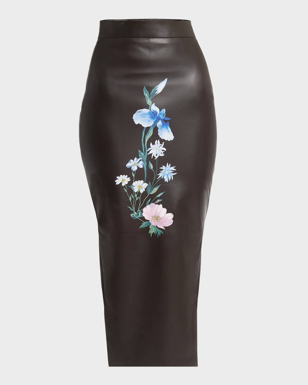 Leather Pencil Skirt with Floral Details