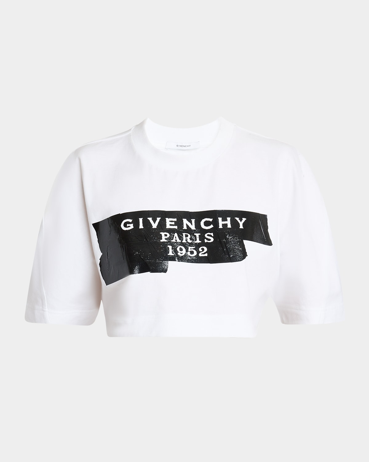 Boasting a roomy cocoonshaped silhouette, this tee by Givenchy showcases a central logo tape 3D print Crew neckline Elbowlength sleeves Relaxed fit Cropped hem Pullover style Cotton Made in Portugal