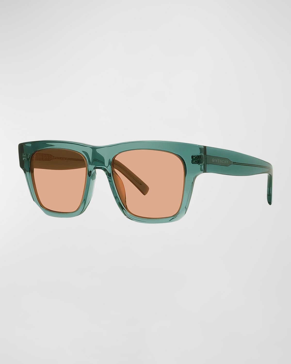Givenchy square sunglasses in acetate Lens/bridge/temple (in mm): 5218145 Contains an average of 54% biobased content Solidcolor lenses Logo on temples Wide, tapered arms 100% UVA/UVB protection Imported