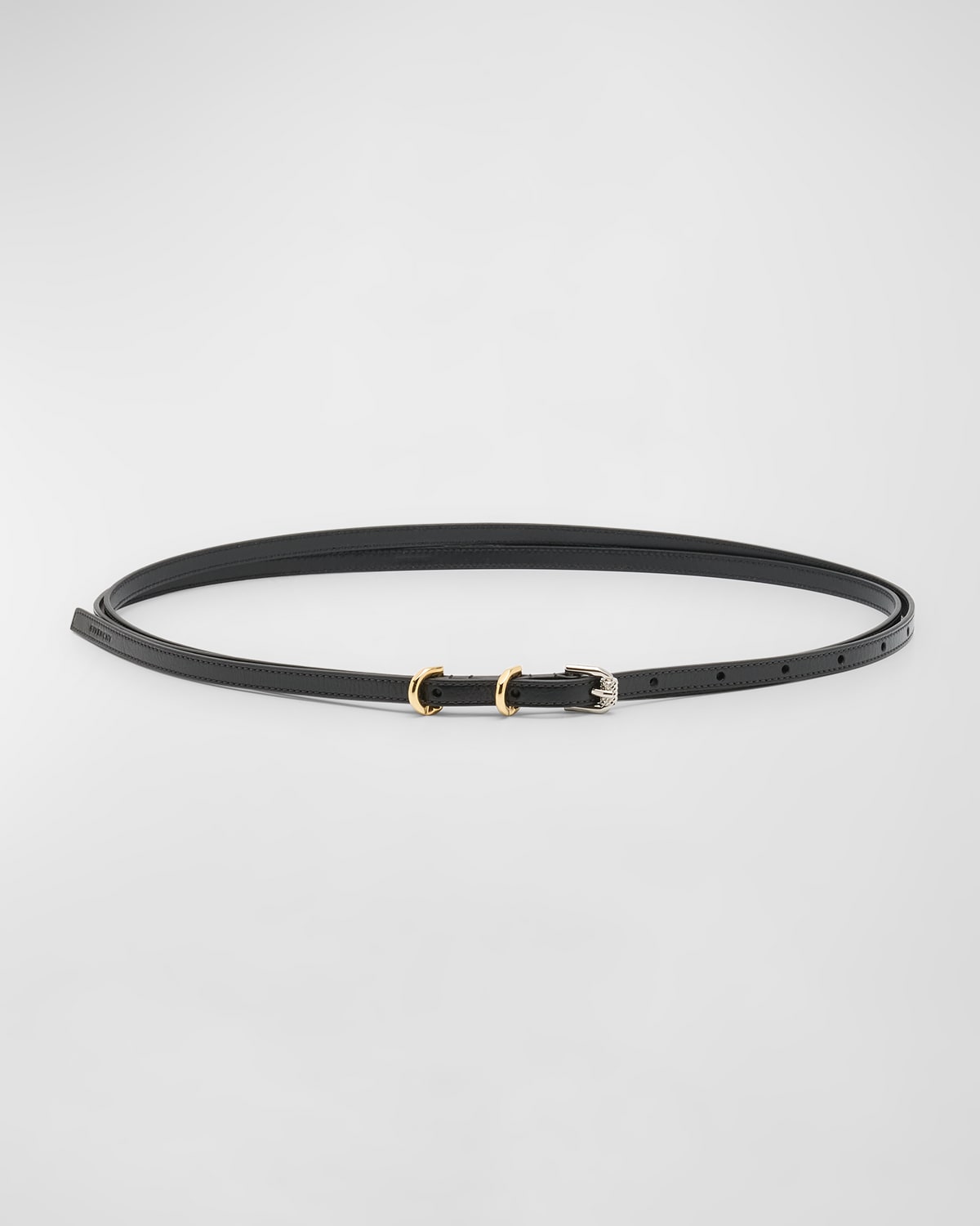 Givenchy "Voyou" double wrap belt in tumbled leather and brass Approx. 0.4"W Adjustable fit Frame buckle Mixed metal hardware Made in Italy