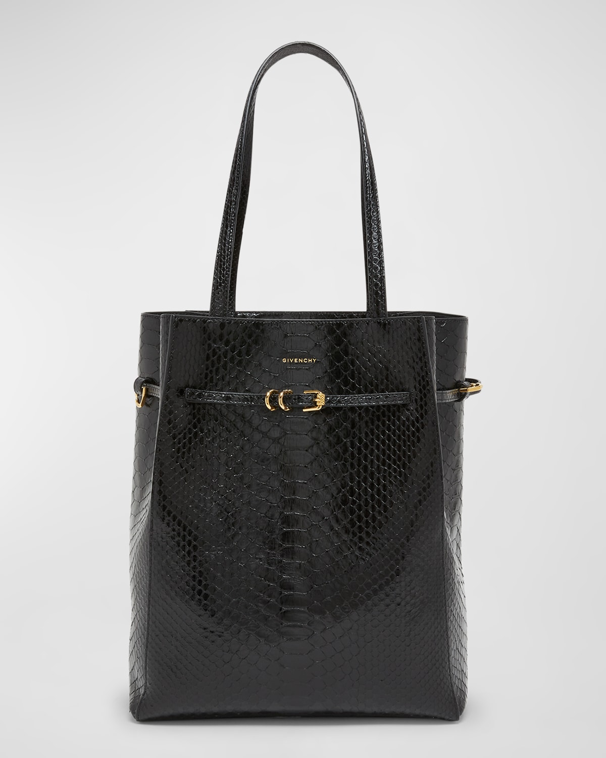 Givenchy "Voyou" northsouth tote bag in pythonembossed leather Shoulder straps Open top with adjustable center strap Approx. 15"H x 11.8"W x 4.3"D Made in Italy
