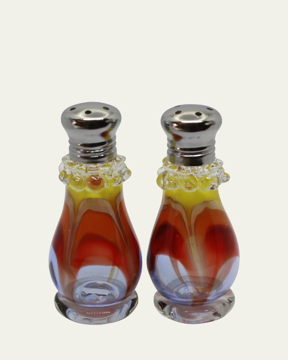 Each shaker has been individually crafted by Glass Act's handpicked artists using a technique called Lampworking. Lampworking is the process by which the artist works the glass over a small flame of intense heat, adding luxuriant colors and shaping the piece to the desired form. Handcrafted of Pyrex® glass with a chromeplated metal top Approx. 1.3"Dia. x 2.5"T each Item Weight (Lbs.): 0.1 Hand wash 2piece set Made in USA