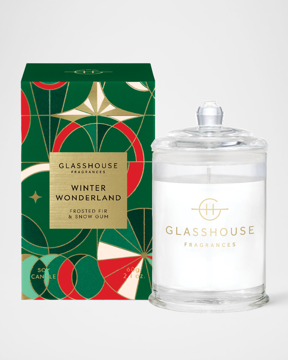 GLASSHOUSE FRAGRANCES Christmas Winter Wonderland Candle, 60 g Scent Inspiration: The nostalgic, sensory immediacy of the tree, glistening prettily with snowflakes and sparkling with the scent of freshly cut fir and spruce, it's Christmas at its most starbright. Here is a toast to a season filled with goodwill and merry memories for years to come. Fragrance amp; notes: Top: Pine Needles, Eucalyptus, Apple Middle: Red fruits, Fir Balsam, Spruce Base: Cedarwood Fragrance profile: fresh/citrus How to use: Trim wicks to 7mm before each use using scissors or a wick trimmer. If wicks are too short the wax may not burn all the way to the edge (tunneling), and if too long the wicks may appear to mushroom causing black soot to form on the glass. Place candle in a nondraughty area, away from small children, pets and flammable material. Do not burn for less than half an hour or more than two hours at a time 60 g Ingredients: Soy Wax, Fragrance *Please Note: This ingredient list is subject to change. Please refer to the product packaging for the most uptodate ingredient