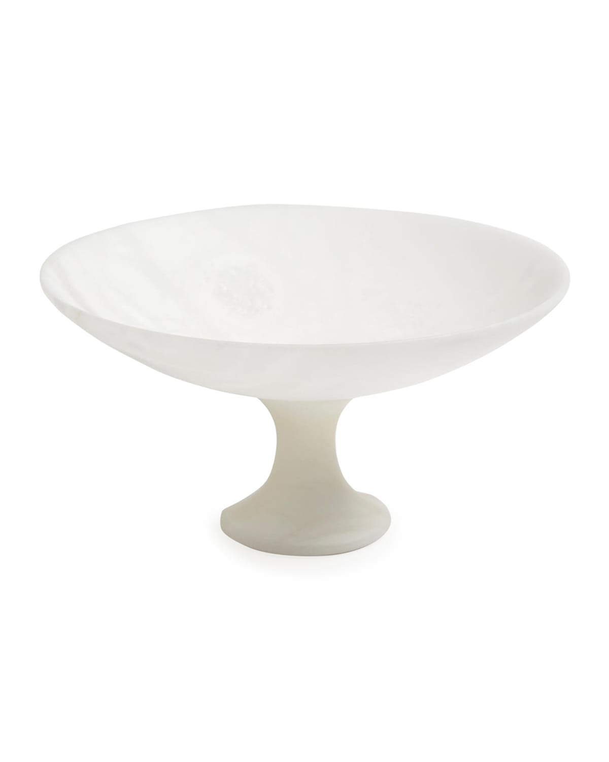 The Ancient Egyptians were the first known civilization to revere alabaster for its translucency and beauty. The mineral is not a hard stone and lends itself perfectly to intricate carving. Our Alabaster Compotes are made by a family who has been working in alabaster for centuries. As alabaster is a natural product, please be aware that there will always be variations in veining and color. This is to be expected and makes every alabaster product uniquely your own. Overall: 8"Dia. x 4.3"T. Weight: 1.3 lbs. Made in Italy.