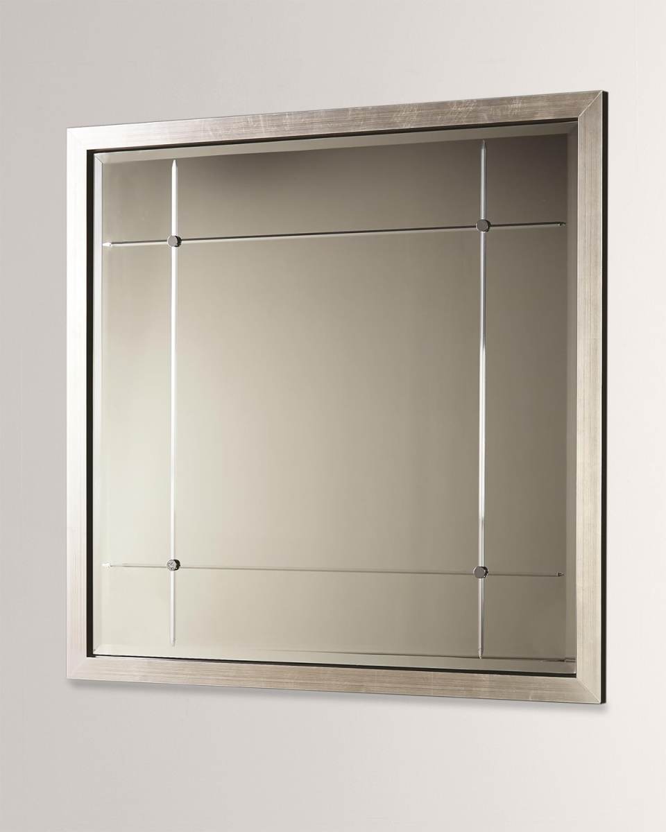 Handcrafted mirror made of solid pine with silver leaf finish. Decorative beveled cut pattern on mirror with nickel clips. Reflective area: 29" Dia. 40.3"W x 40.3"D x 4.3"T. Hangs on metal cleat (provided). Imported. Boxed weight, approximately 123 lbs. Weight: 59 lbs, "crated" "oversized".