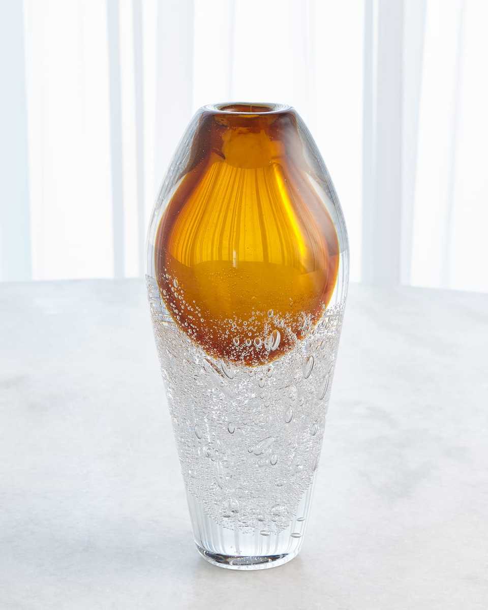 Handcrafted vase made of handblown art glass Approx. 5"Dia. x 13.5"T Sold individually. Item Weight (Lbs.): 12.9 Hand wash Imported