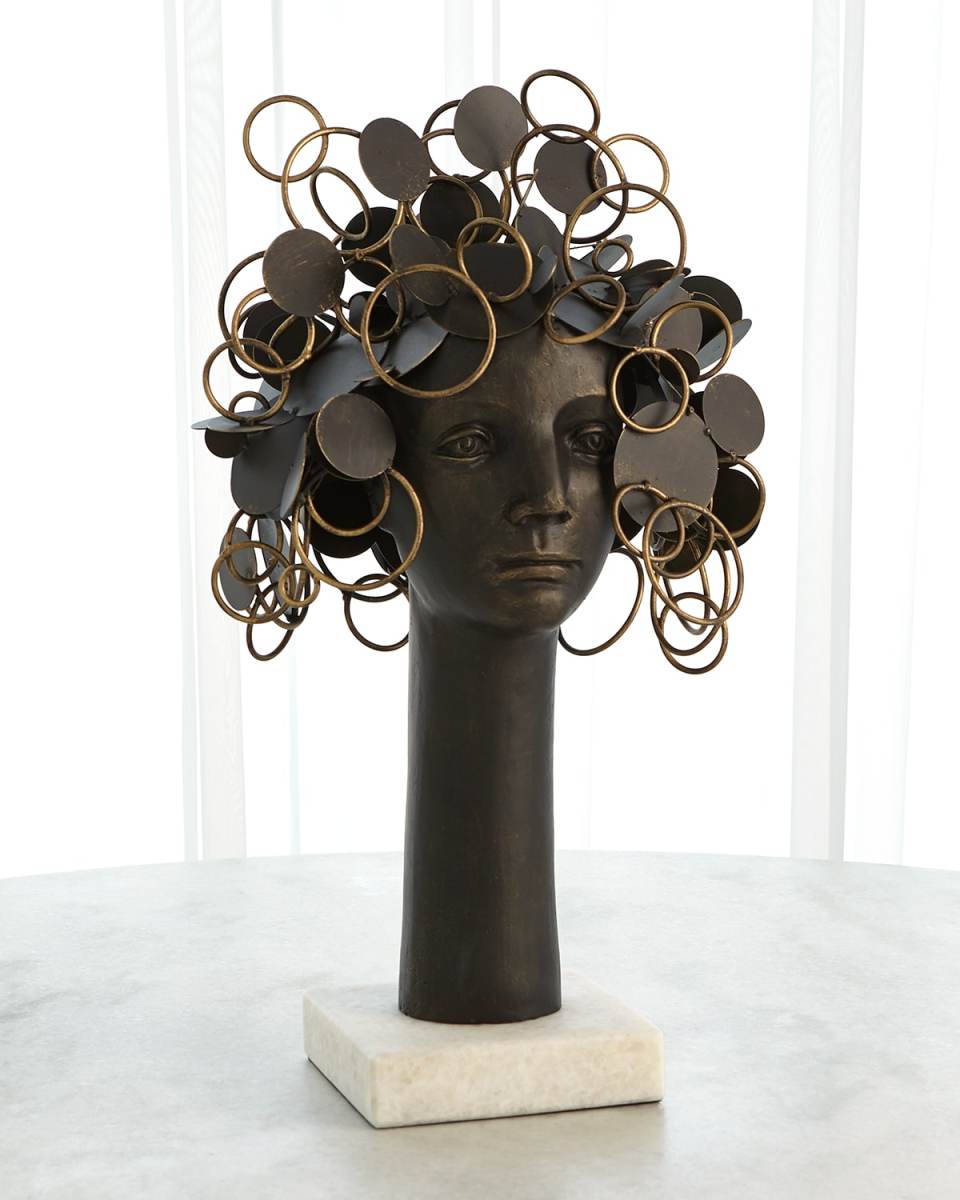 Handcrafted sculpture made of cast iron with marble base Approx. 13.5"L x 14.3"W x 24.5"T Sold individually For indoor use Wipe clean Imported Weight, 28.0lbs Boxed weight, approximately 32.0lbs