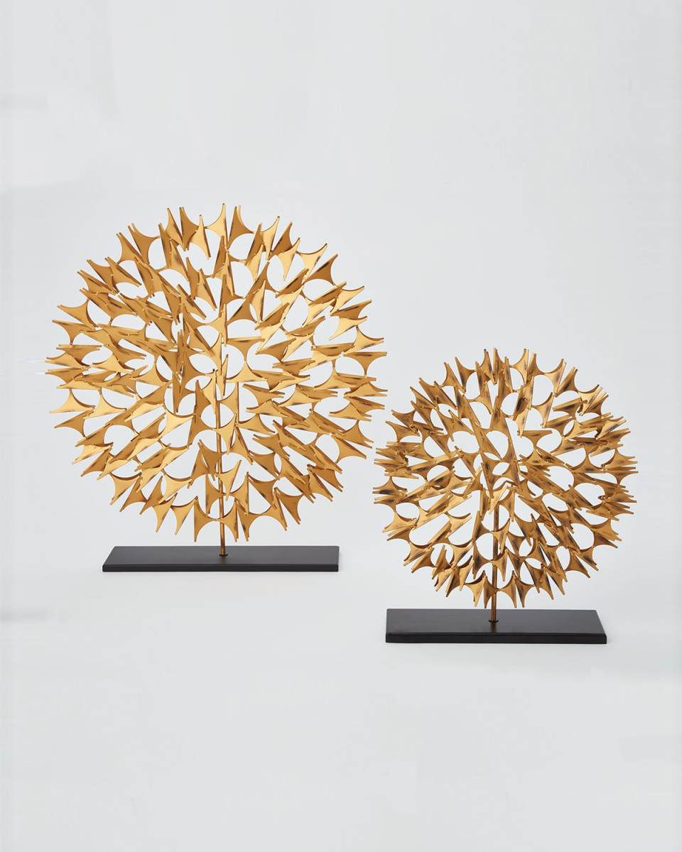 Cosmos sculpture. Iron with golden finish. 24"W x 7"D x 25.5"T. Imported. Boxed weight, approximately 22.8 lbs.