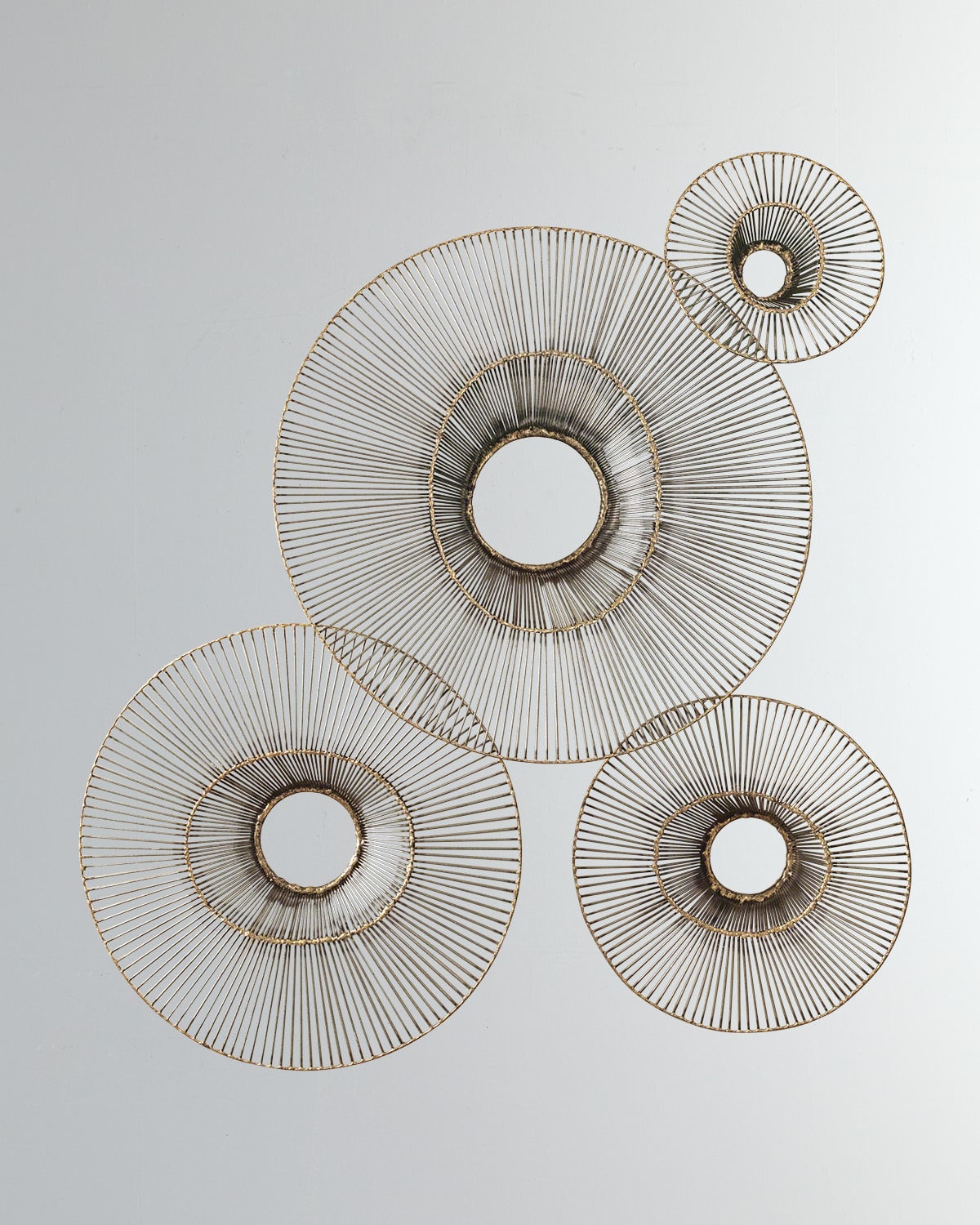 Floating open iron wire vessels frame a mirrored center to create a tilted wall perspective. Use individually or in groups of four different sizes. Hangs on a keyhole slot. 12"Dia. x 4.5"D. Imported. Boxed weight, approximately 7.2 lbs.