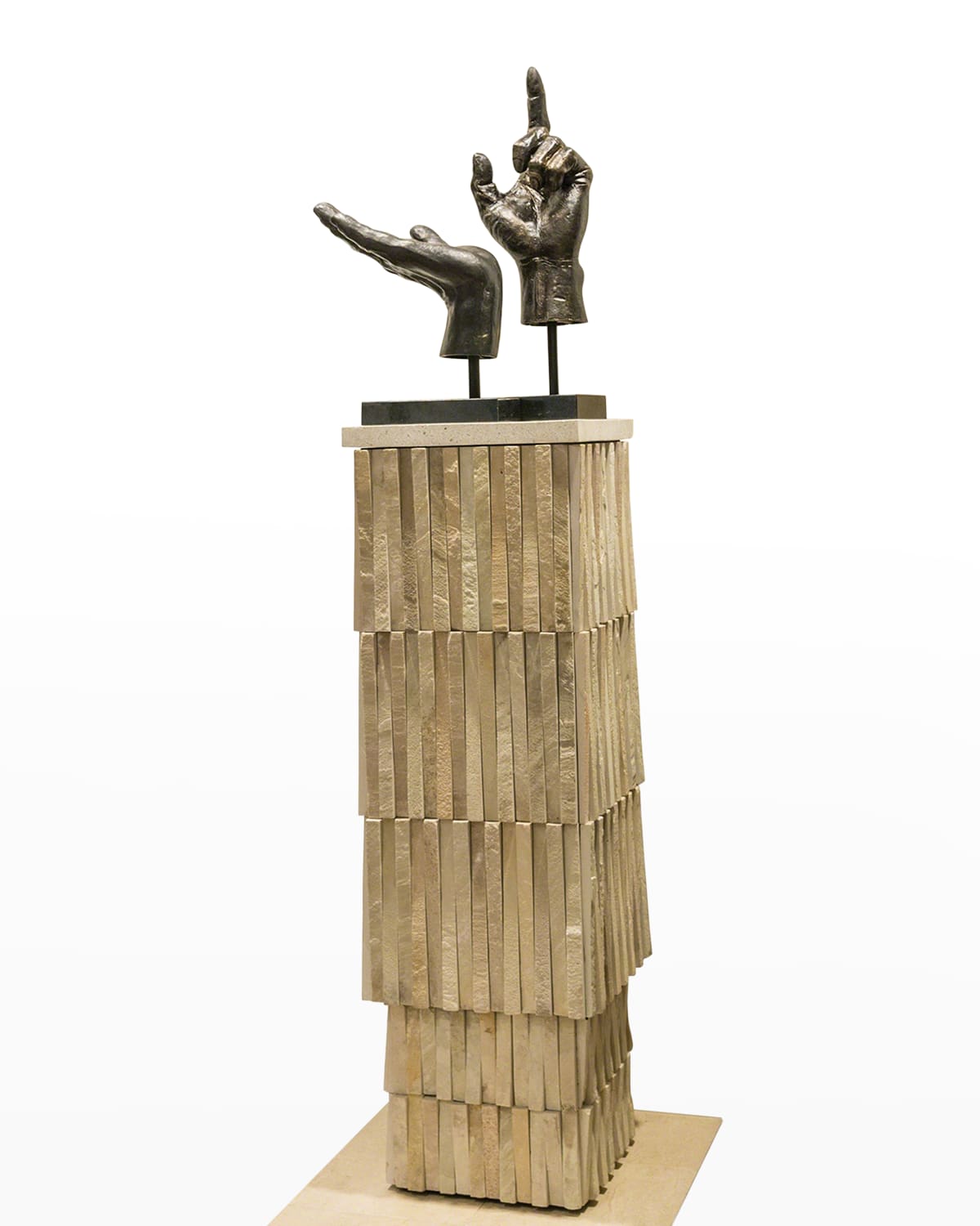 Handcrafted pedestal is hand chiseled and sculpted by artisans Removable terrazzo top and four adjustable nylon glides on base Can be used both indoors or outdoors Made of stone from the desert of Rajasthan Approx. 16"Dia. x 49"T Sold individually Hardware included Assembly not required Item Weight (Lbs.): 231.0 Wipe clean Imported