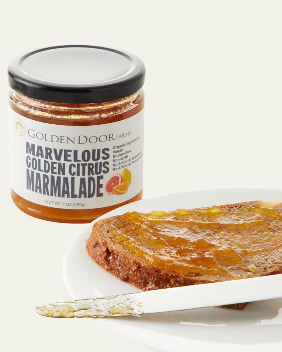 Our newest marmalade is made using Golden Door grown organic fruit. Our jams and marmalade contain no chemical preservatives or artificial sweeteners, are nonGMO, all natural, organic, vegan, gluten and soyfree. Net. wt. 9 ounces (255g). Shelf life: 2 years. Made in the USA.