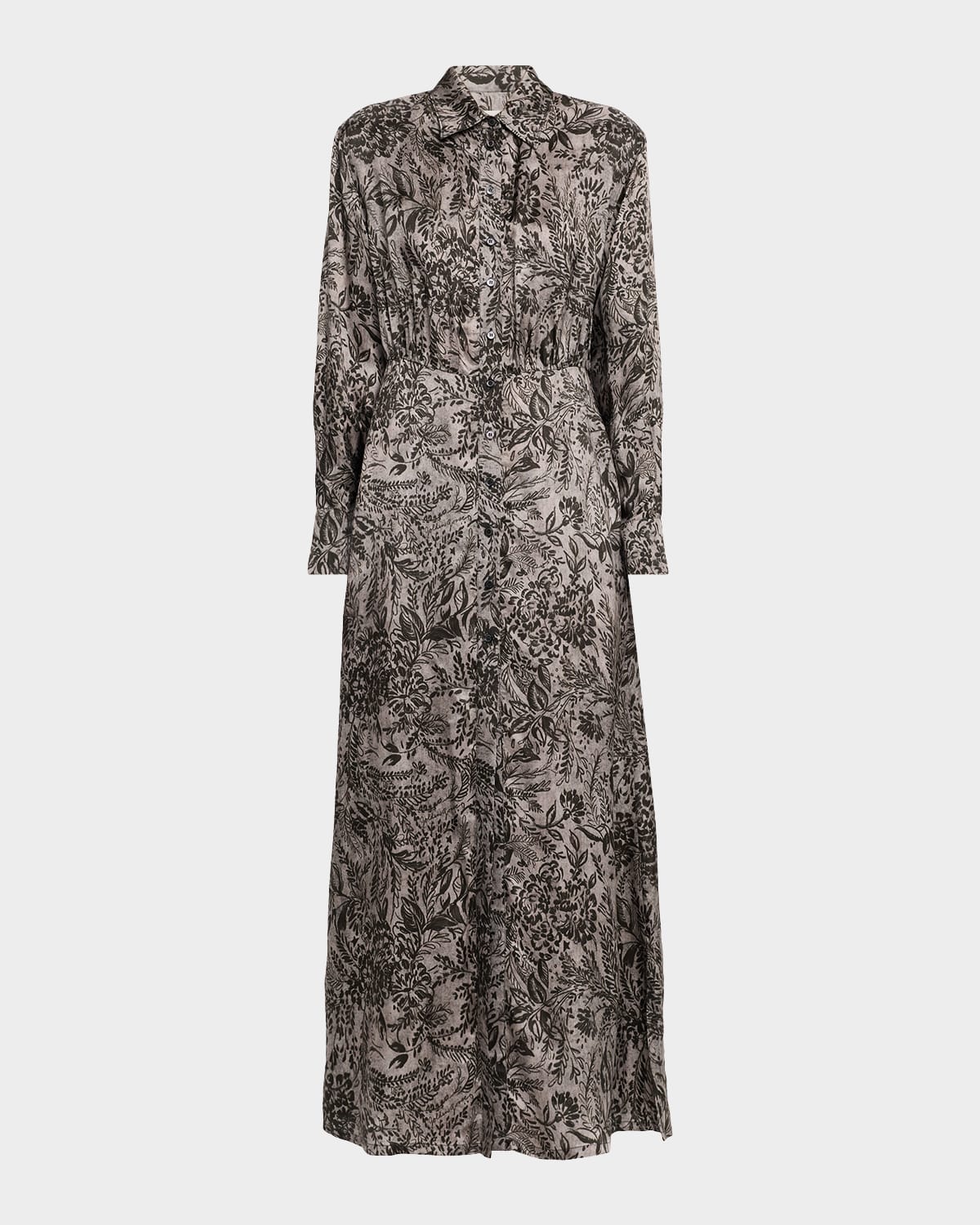 From the Golden Goose "Golden" collection, this maxi dress is crafted from fluid viscose twill with a vintageinspired floral print. Point collar; buttonfront Long sleeves with button cuffs Elasticized waist Side pockets Shirtdress silhouette Full length Viscose Dry clean only Made in Italy