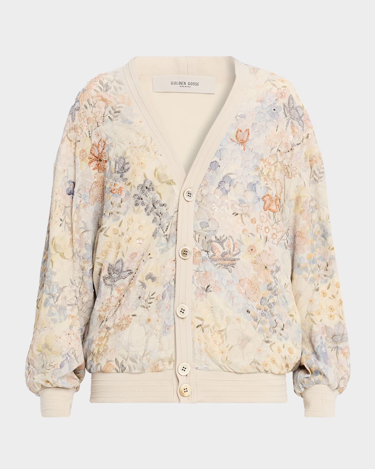 Golden Goose floral embroidered cardigan from the Journey Collection V neckline Dropped shoulders Long sleeves Relaxed fit Banded hem Buttonfront Viscose/polyester Made in Italy