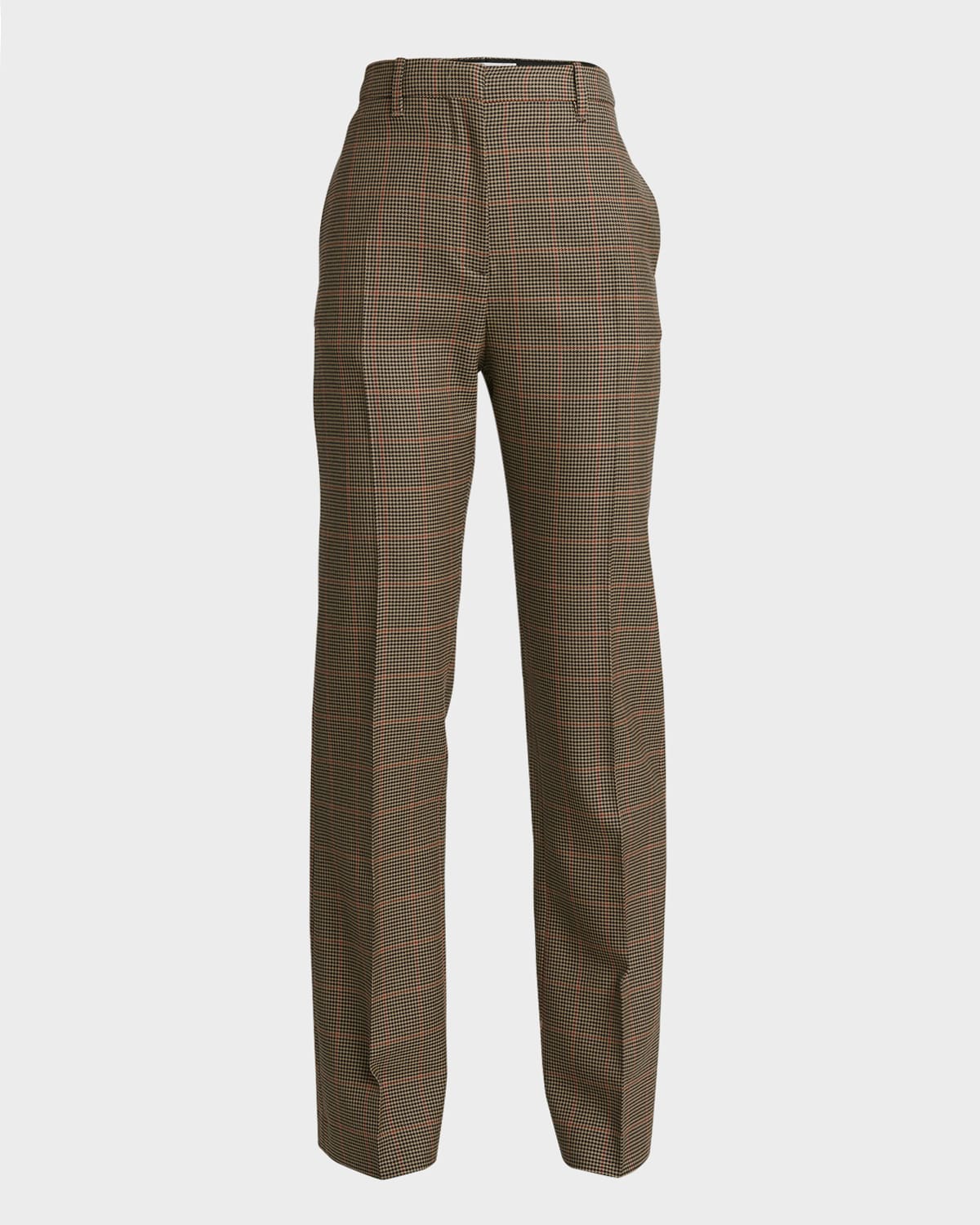 Golden Goose "Journey" straightleg wool pants featuring a check motif High rise Side seam pockets Relaxed fit Full length Concealed button/zip fly; belt loops Virgin wool Dry clean Made in Italy
