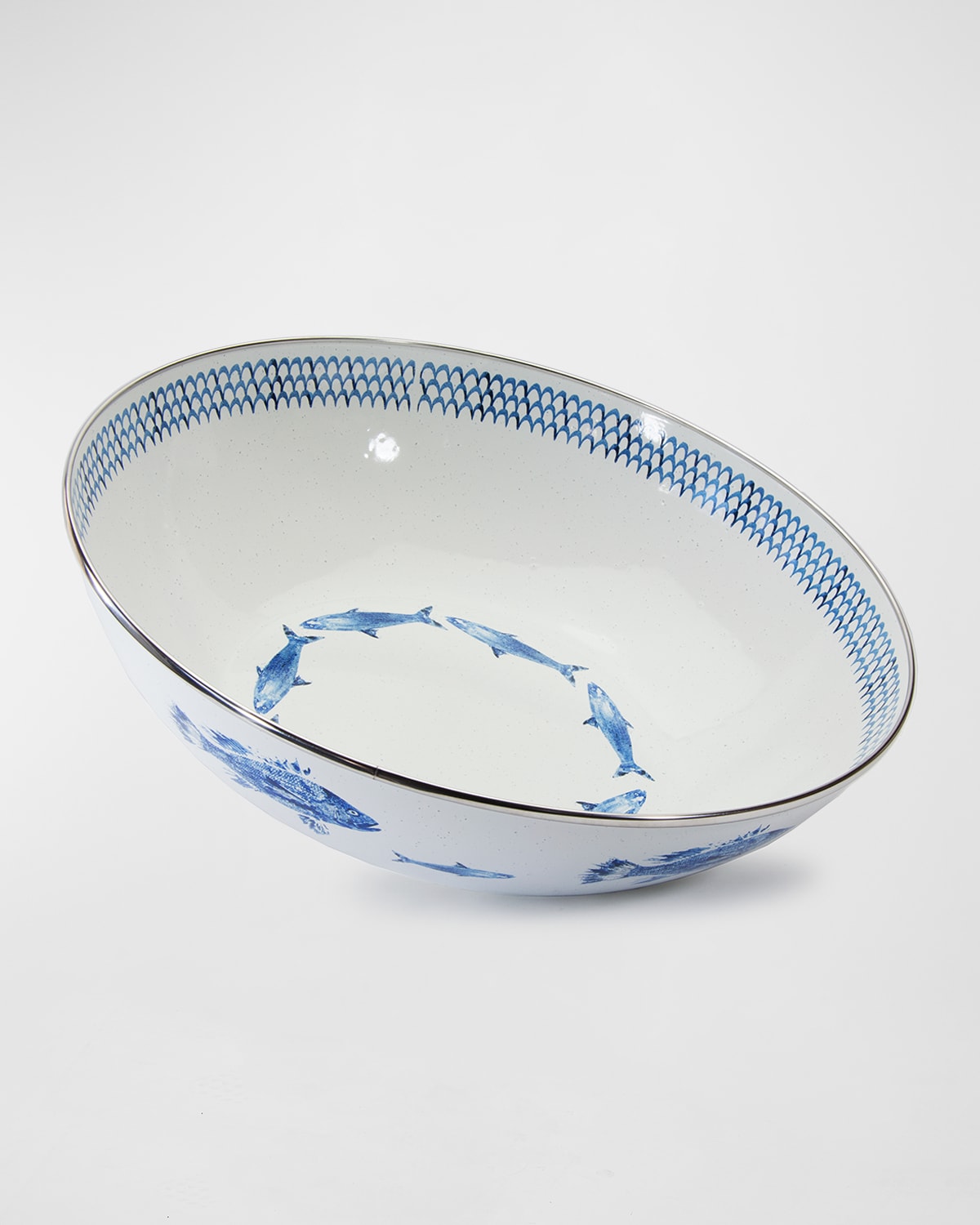 Classic and colorful, Golden Rabbit enamelware is fully functional without forgetting the fun - from the oven to table to the dishwasher and even the fridge 6 quart catering bowl, 14 inch diameter x 3.75 inch deep Made of carbon steel coated with a porcelain enamel and trimmed in stainless steel Please note: There will be variations in the shading of colors and pattern formations which are the results of the handdipped process Approx. 14"L x 14"W x 4"T Sold individually. Size (ounces): 160 Item Weight (Lbs.): 2.0 Oven and stovetop safe works with induction dishwasher safe not intended for microwave Imported