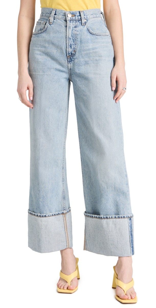 Fabric: Heavyweight, non-stretch denim. Exaggerated, fixed cuffs. Fading and whiskering. Ankle length. Button closure and zip fly. 5-pocket styling. Shell: 100% cotton. Wash cold or dry clean. Made in the USA of imported materials. Measurements: Measurements from size 25 Rise: 11.75in / 30cm Inseam: 28.25in / 72cm Leg opening: 21.25in / 54cm