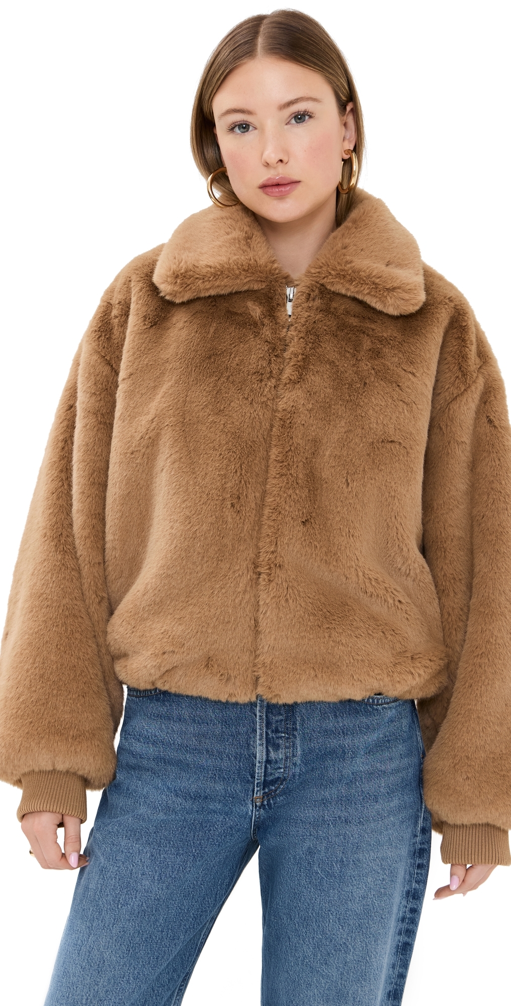 Fabric: Heavyweight, non-stretch faux fur. Collared neck. Long sleeves with elastic cuffs. Zip at front. On-seam side pockets. Shell: 100% polyester. Lined. Dry clean. Imported, China. Measurements: Measurements from size S Length: 22.5in / 57.0cm, from shoulder