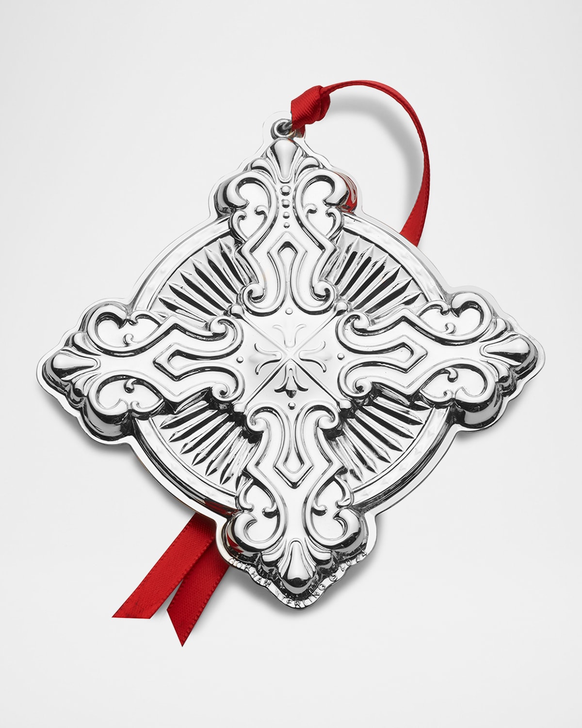 The 2024 Sterling Silver Cross Ornament is the 11th Edition in this series by Gorham. A limited edition collectible, this ornament will enhance any tree or mantelpiece. Handcrafted of sterling silver Design repeats on the reverse side Packaged in a gift box Includes a ribbon and protective velvet pouch Approx. 3.75"T x 3.75"W Item Weight (Lbs.): 0.5 If necessary, polish with silver polish, use as directed Hand wash Made in USA
