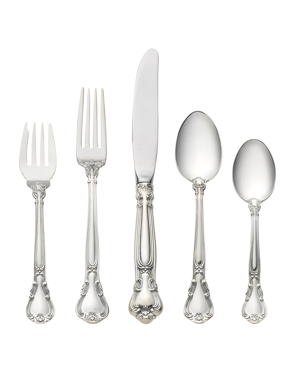 Gorham is proud to share with you the 125th Anniversary of the most popular sterling flatware pattern of all time, Chantilly. Designed by William C. Codman in 1895, Chantilly derives its name from the famous palace near Paris. It's beloved for its elegance. Fivepiece flatware set. Made of sterling silver and stainless steel. Dishwasher safe. Made in the USA.