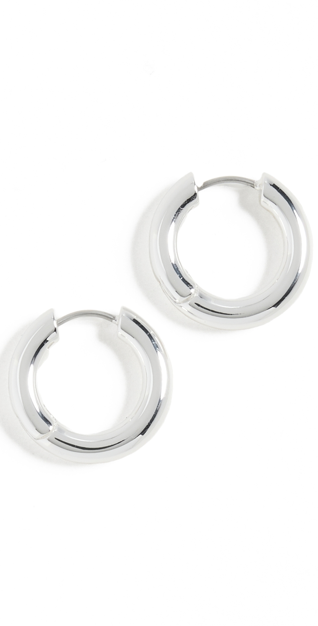 Silver plated brass. Hinged hoop. Imported, China. Measurements: Length: 0.75in / 2.0cm
