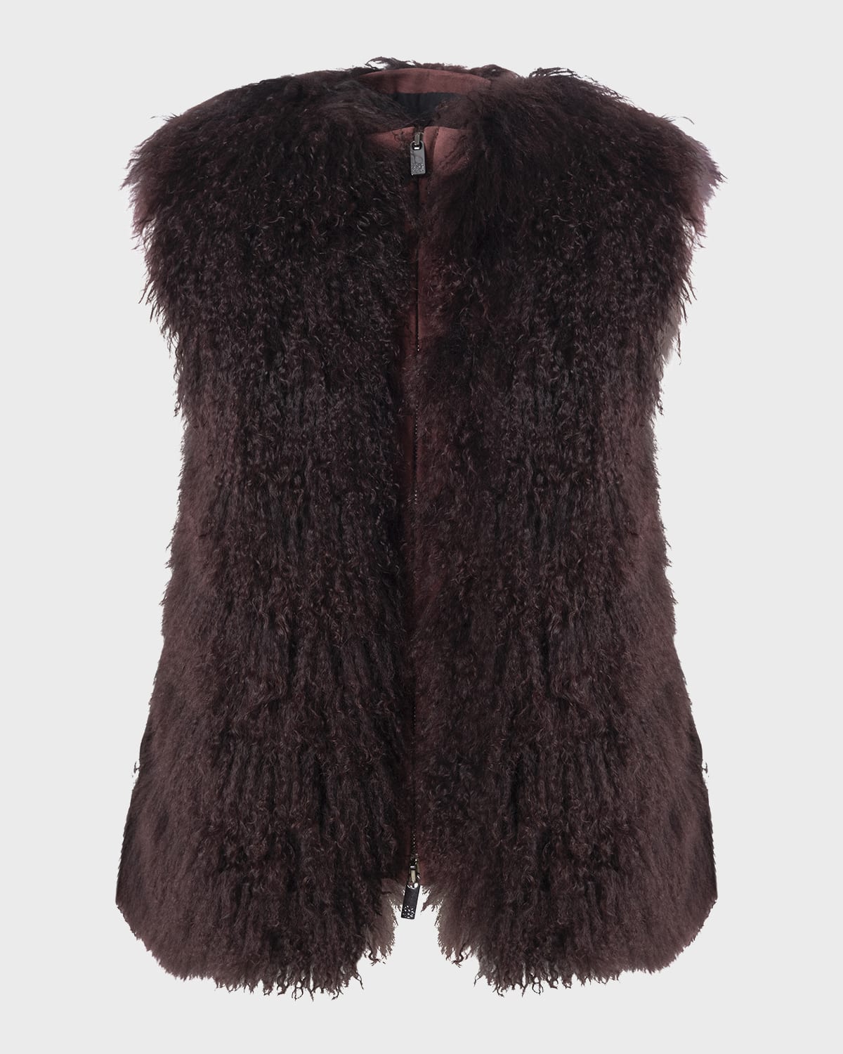 Gorski vest in dyed Mongolian goat (China) Round neckline twoway zip front Sleeveless Oversized fit Lining: Silk Professional cleaning recommended Made in Italy