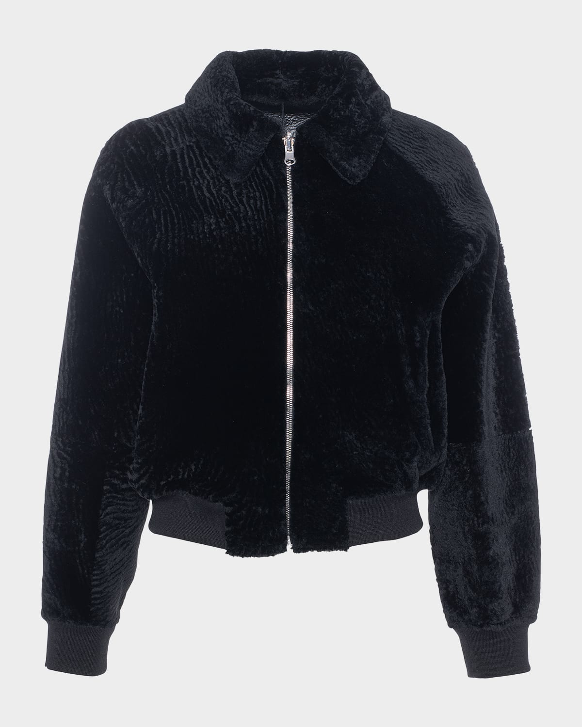 Reversible Textured Lamb Shearling Zip Jacket
