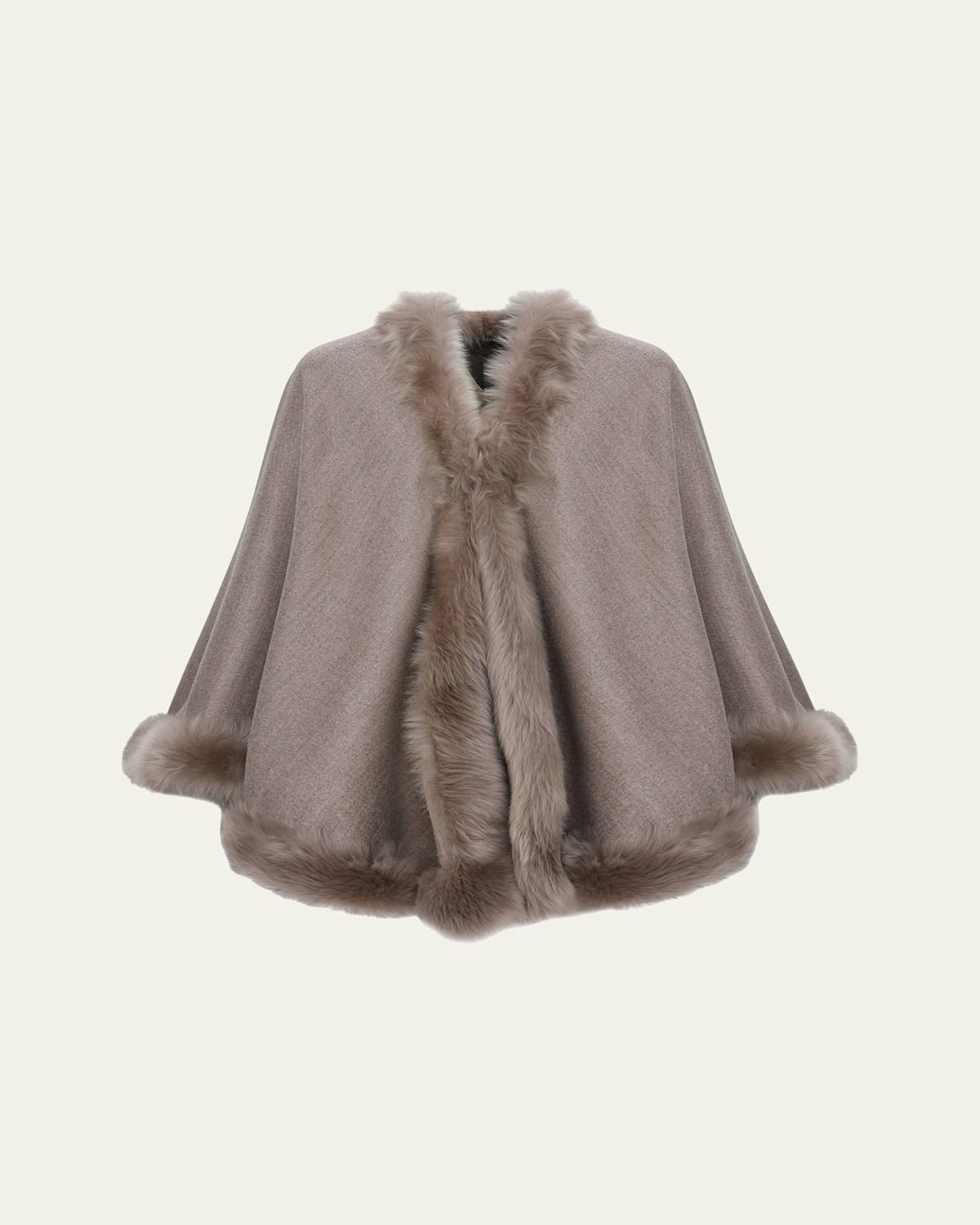 Wool and Cashmere Cape with Merinillo Shearling Lamb Trim
