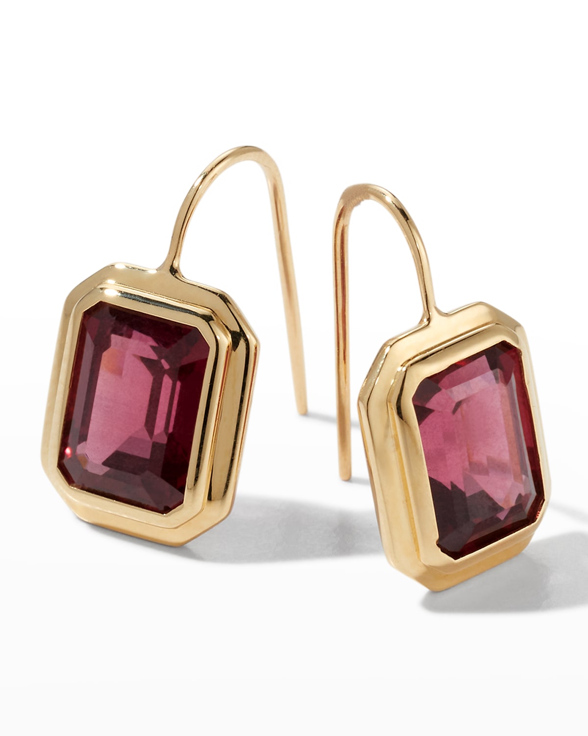 Goshwara earrings Approx. 9mm x 7mm 18karat yellow gold Emeraldcut garnet For pierced ears Total carat weight: 5.75 Imported