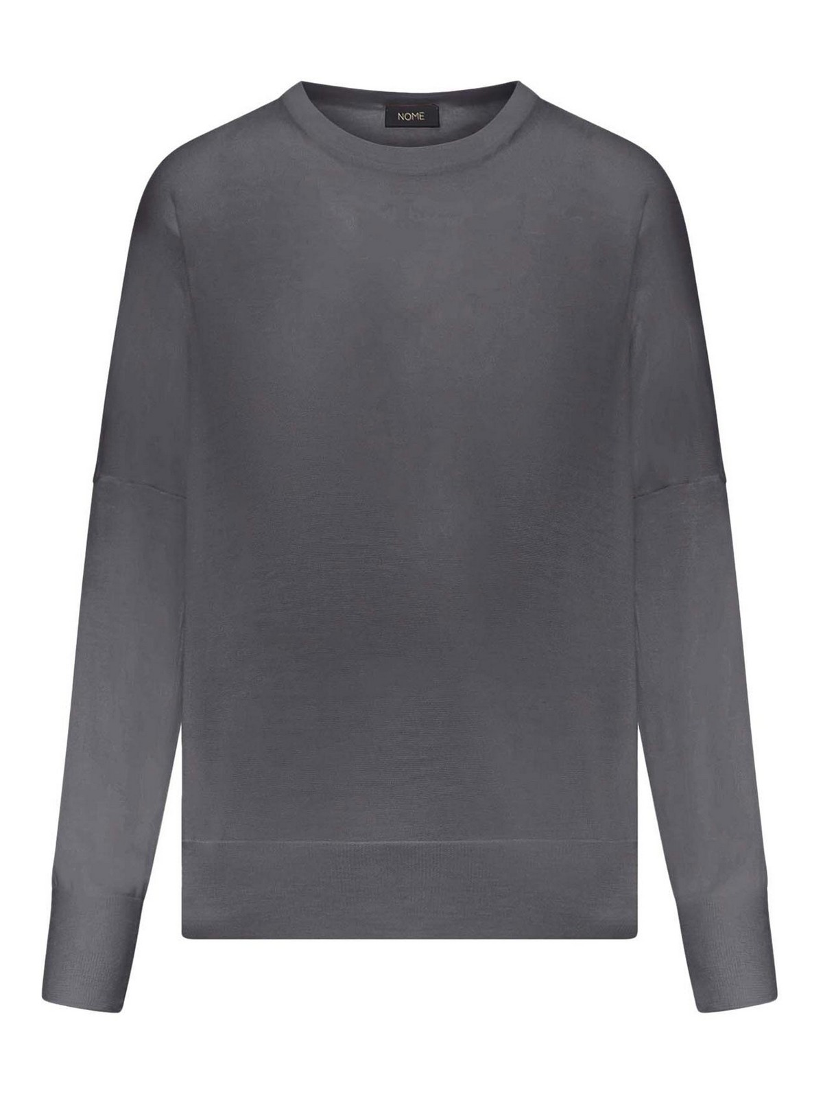 Col rond, manches longues, ourlet droit, emmanchures tombantes, deux fentes latérales, bordures côtelées, - couleur anthracite