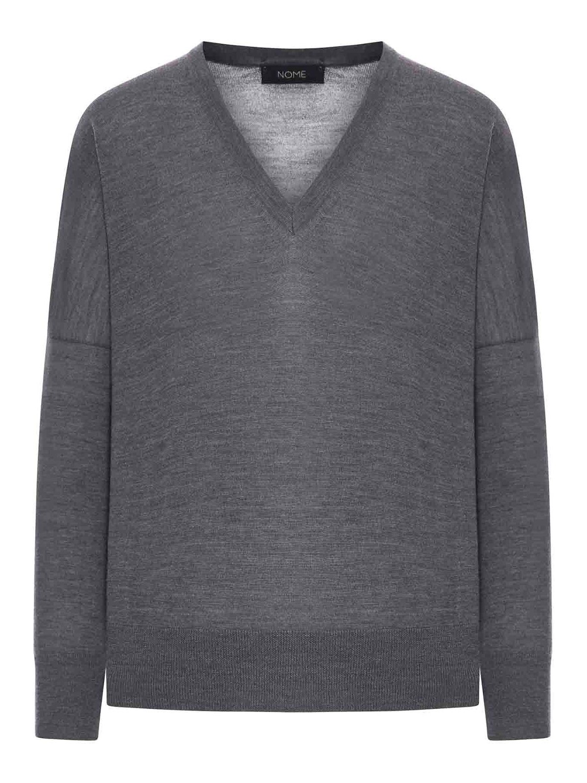 V, encolure, emmanchures tombantes, manches longues, ourlet droit, poignets et ourlet côtelés