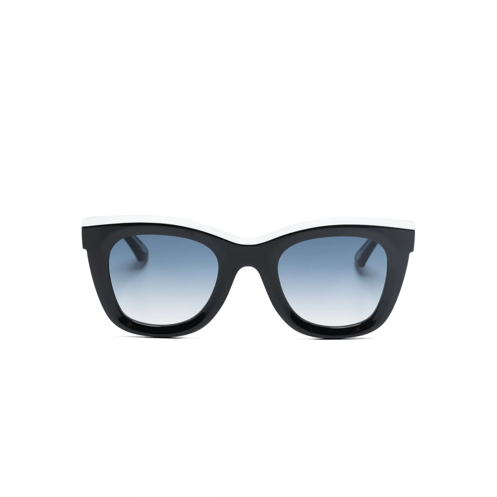 black acetate square frame gradient lenses UV-protective lenses sculpted arms curved tips These glasses come with a protective case.