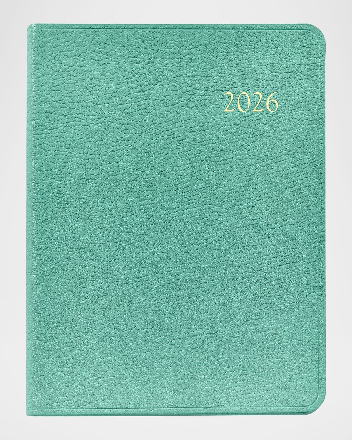 This weekataview desk diary features a vertical format designed with a trim size that offers more writing space than most larger, more cumbersome diaries. This is a pure appointment book designed to organize your day, week, month, and year. Leather cover with Smythsewn binding for strength and longevity 240 pages of acidfree paper with gilt edges Year stamped on the cover in gold ink Satin ribbon marker Approx. 9.25"L x 7"W Wipe clean Made in USA Page Details: 32 map pages in full color Previous, current, and next year's calendars DayataView and MonthataView appointment pages NextYearPlanning pages U.S. amp; International holidays Record pages for personal birthdays and anniversaries Gifts appropriate for selected anniversaries Zodiac dates and symbols Birthstone and flower for each month Personal telephone directory and restaurant record Telephone Information pages, including North American area codes, International dialing codes, and tollfree numbers Information pages on U.S. and International road distances, air distances, and weather International travel information, including currency exchange rates and weight/measure equivalents/conversion