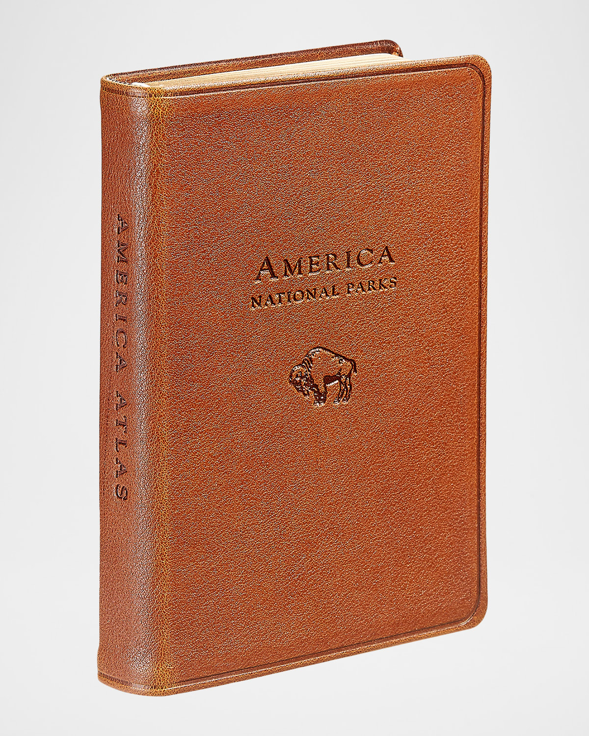 The most popular book in the line, America is an atlas with a point of view. Focusing on leisure travel in the U.S. with an emphasis on national parks, this atlas features historic sites and American cultural destinations. This includes scenic highways, recreational areas, and historical locations like Route 66, Civil War battlefields, and Antebellum home regions. There is a map offering a regional specialty for every state in the nation. Leather cover with Smythsewn binding for strength and longevity 320 pages of acidfree paper with gilt edges Doublefaced ribbon marker Wipe clean Made in USA Page Details: 160 pages of fullcolor maps, including a continental map, regional driving, and statespecific maps Information on National Parks and Trails, State Parks, and National Forests Information on important recreation and resort areas Information on historic sites and the most visited places in America Information on noted regional sites (vineyards, horse farms, battlefields) Information on outdoor destinations (family amusement centers, natural wonders, golf amp; ski centers, hiking trails) Information on U.S. travel distances, weather, and tollfree telephone numbers
