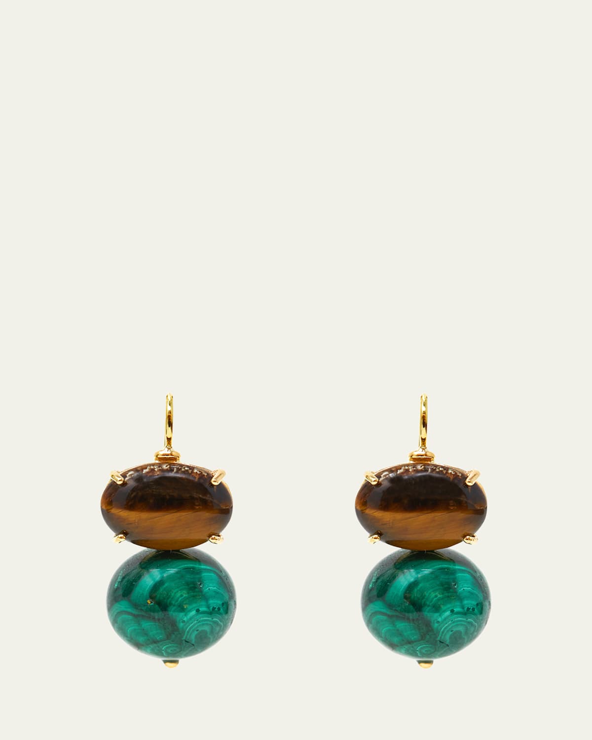 Monachina Stone and Boule Earrings in Tiger Eye and Malachite Ball