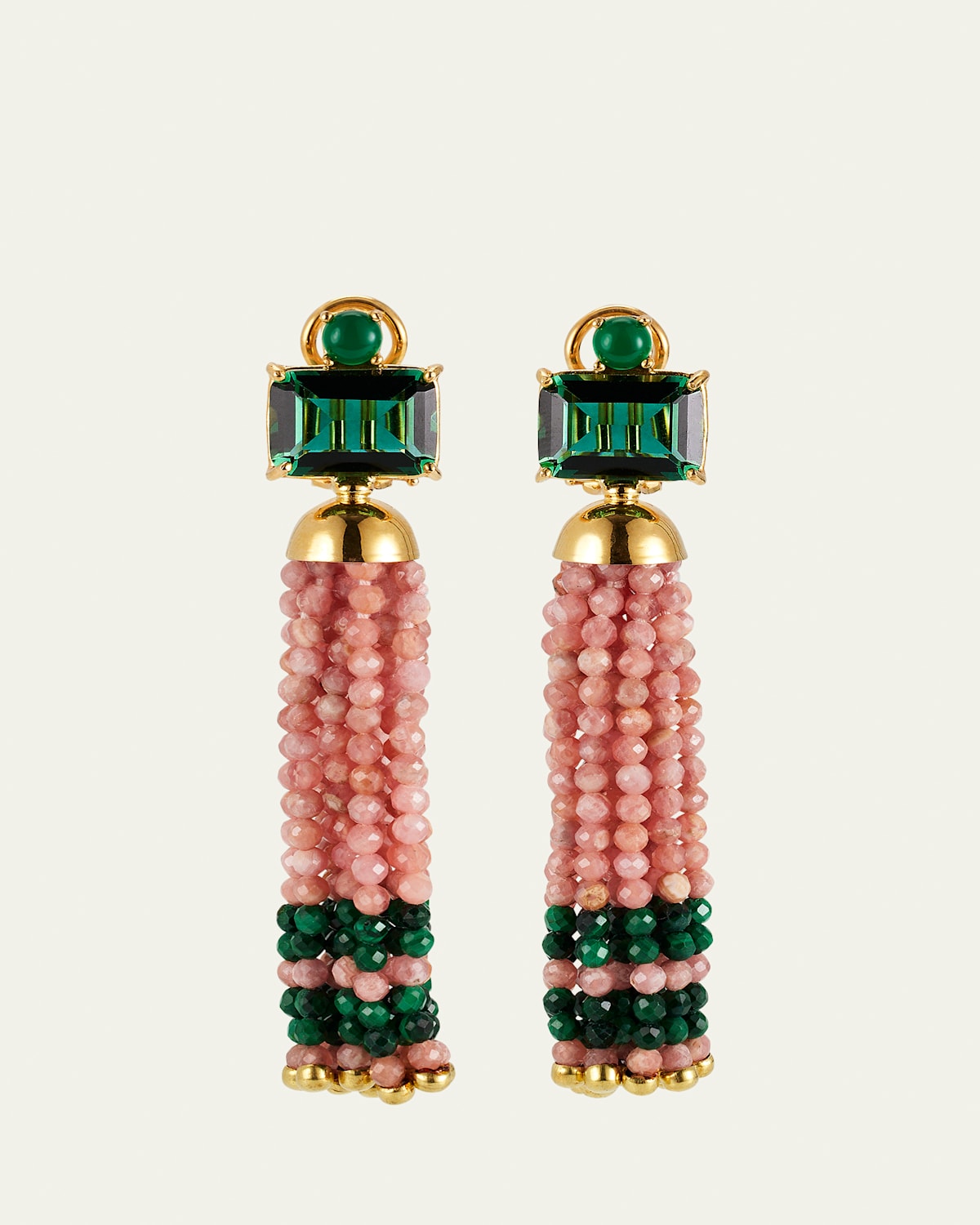 Rhodochrosite, Malachite, Green Quartz and Green Agate Tassel Earrings