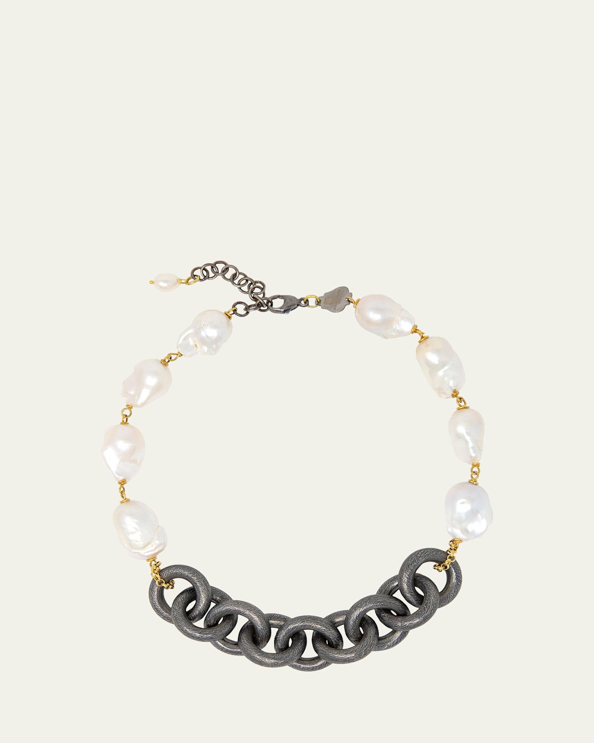 Grazia And Marica Vozza necklace Necklace length: approx. 19.5 inches Blackened sterling silver 18karat gold vermeil Naturally hued freshwater cultured pearls Adjustable length Lobster clasp Made in Italy