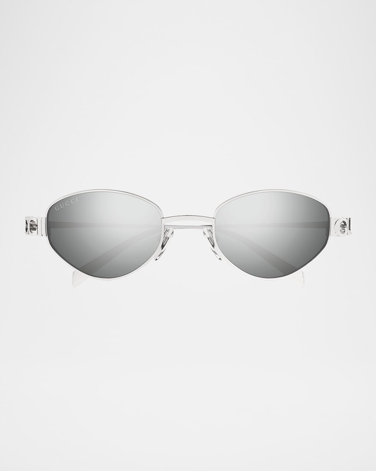 Featuring a logo insert detail at the hinges, the "Block Bending" metal sunglasses by Gucci blend a statement silhouette with a contemporary touch. Lens/bridge/temple (in mm): 4718125 Oval frames Mirrored lenses Adjustable nose pads Thin, tapered arms Includes case and cleaning cloth 100% UVA/UVB protection Made in Italy