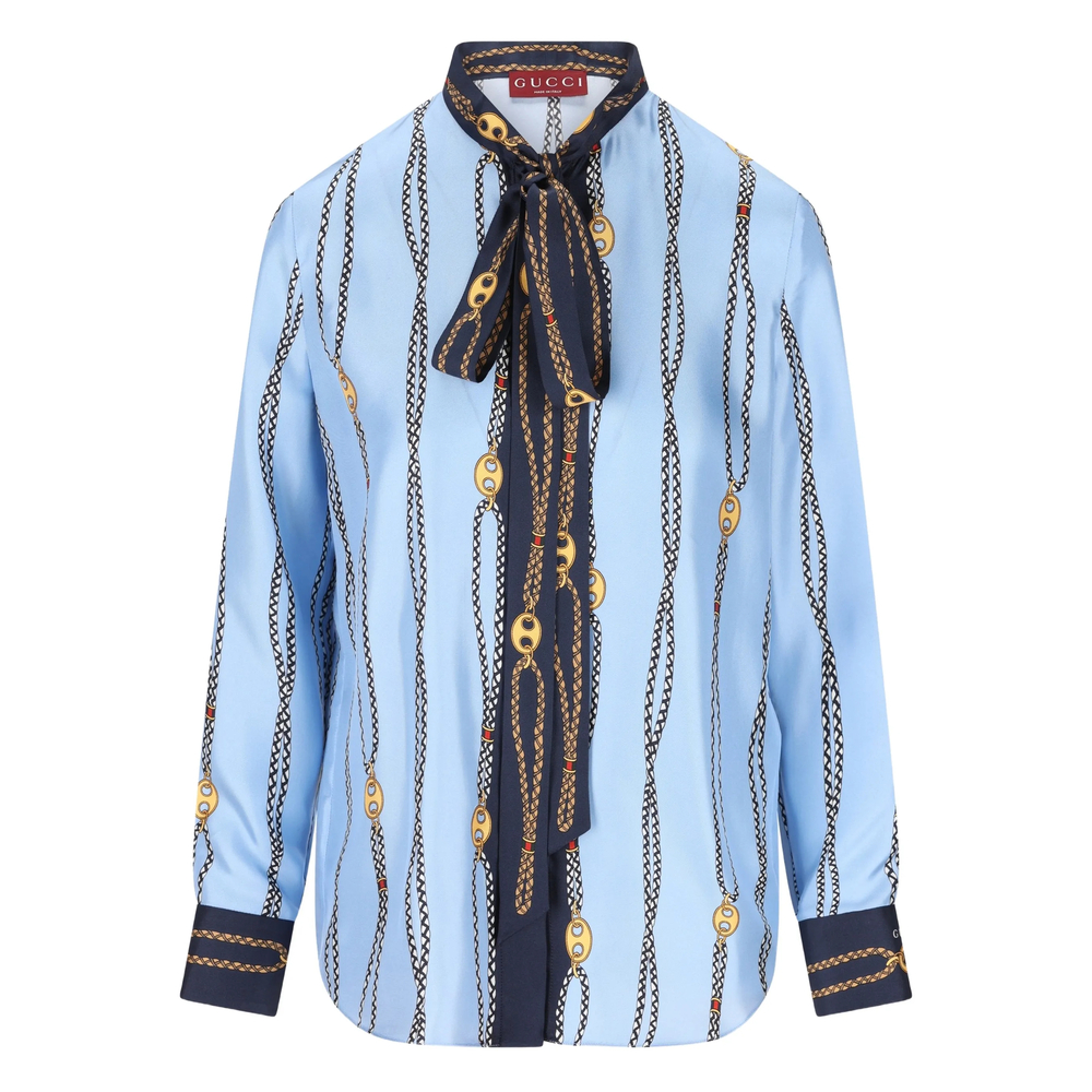 azure chain print tie detail button fastening long sleeves buttoned cuffs