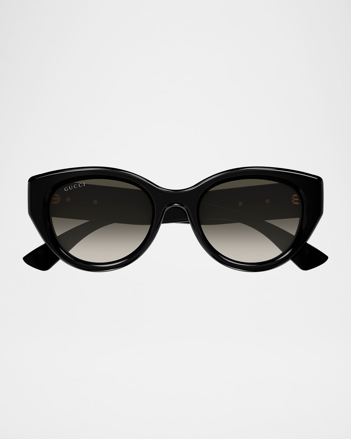 Accented by the signature Double G logo on the temples, the "GG1976SK" acetate sunglasses by Gucci combine the coveted silhouettes of bygone decades with a contemporary logo feel. Lens/bridge/temple (in mm): 5221145 Round frames Gradient lenses Fixed nose pads Wide, tapered arms 100% UVA/UVB protection Made in Italy