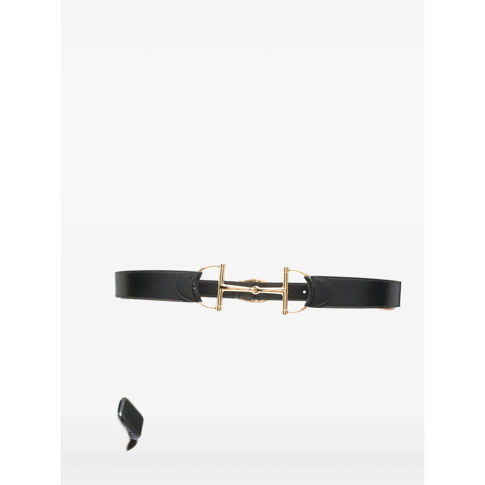 black horsebit detail buckle fastening gold-tone hardware adjustable fit tonal stitching