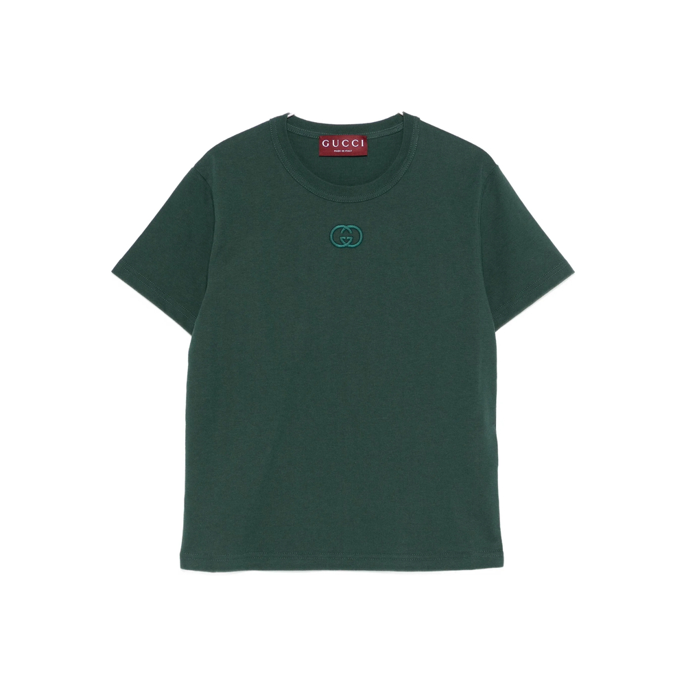 dark green embroidered interlocking G logo round neck short sleeves straight hem tonal stitching