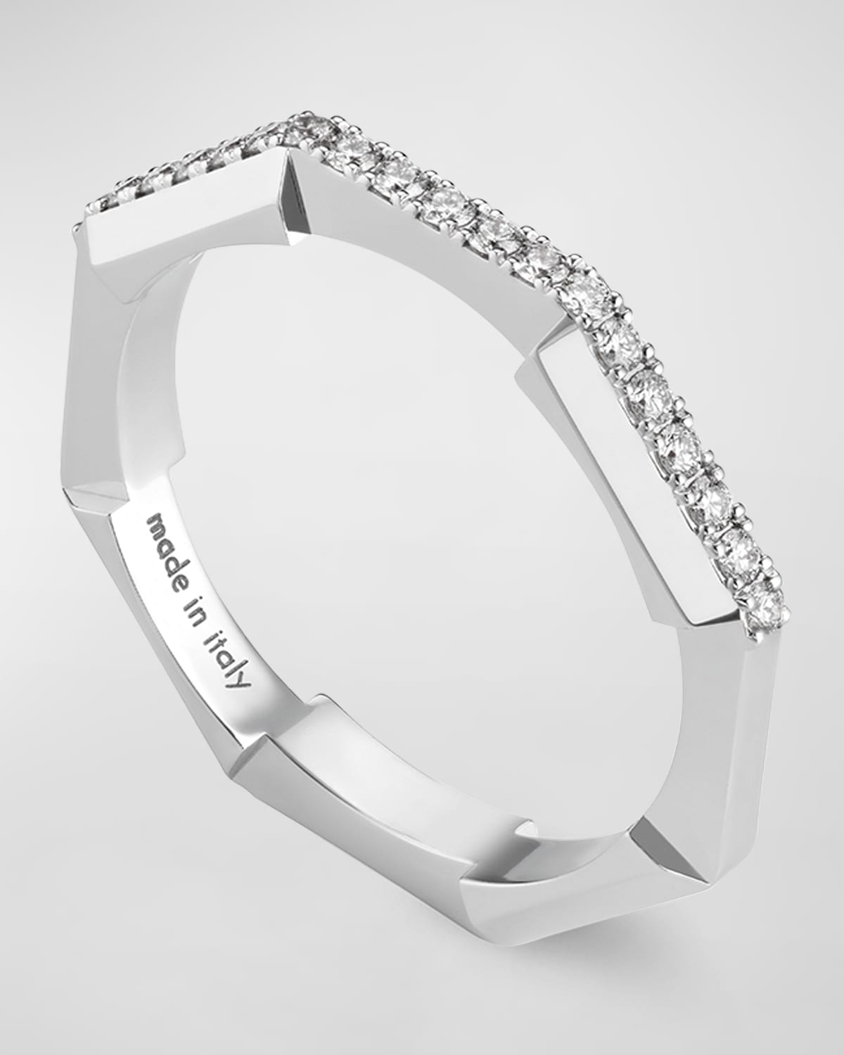 Gucci ring in 18karat white gold. Roundshaped white diamonds. 0.16 total diamond carat weight. Approx. 3mm wide. Made in Italy.